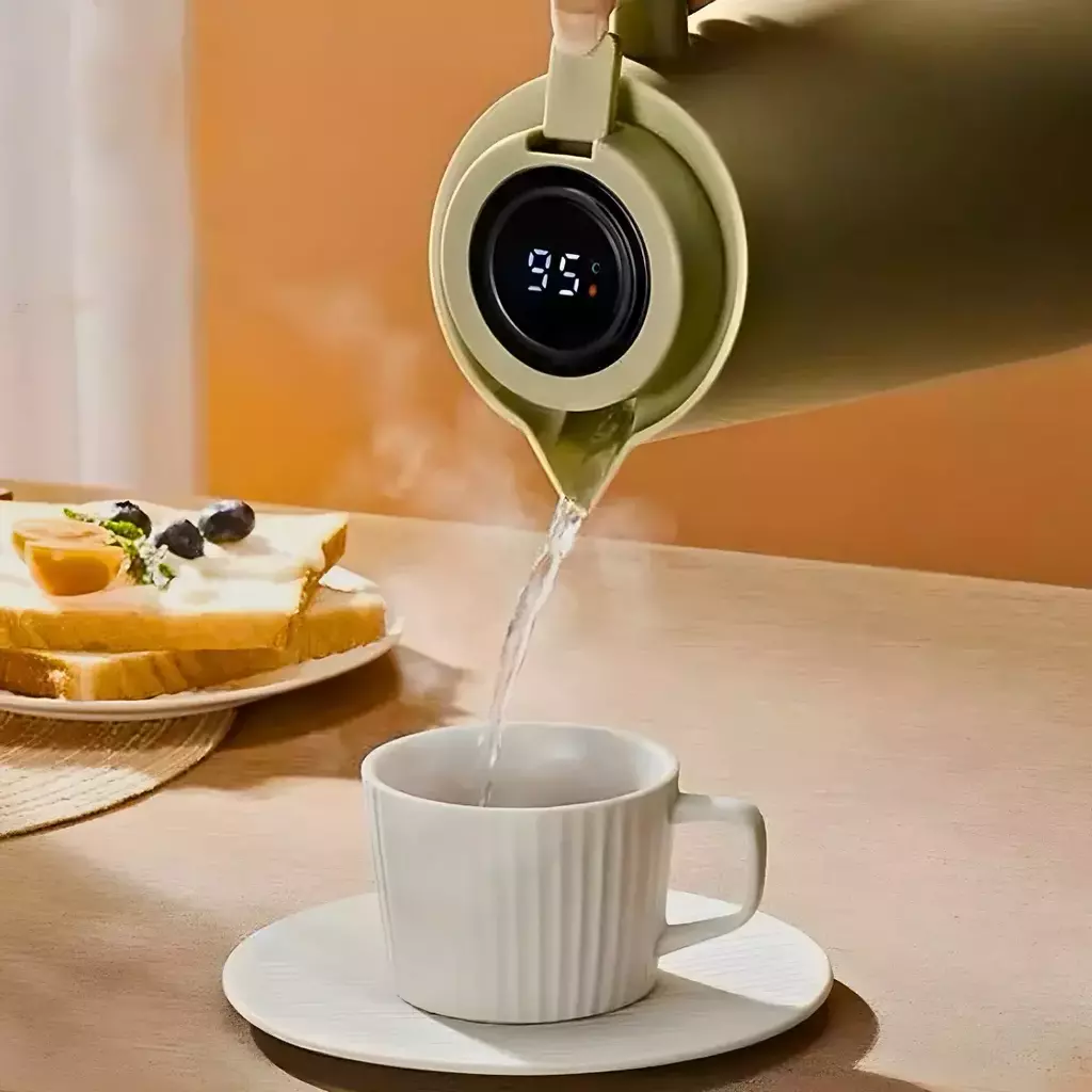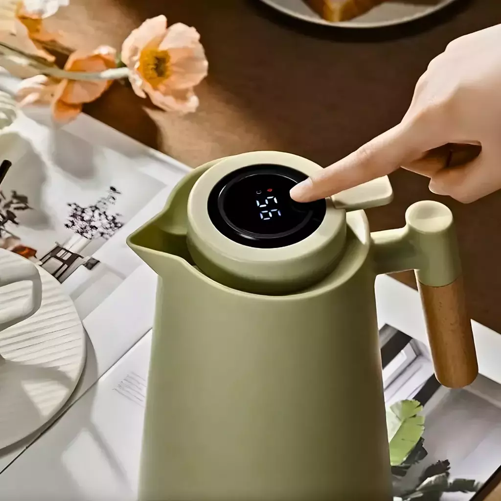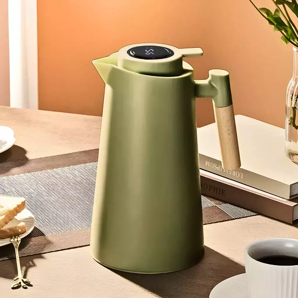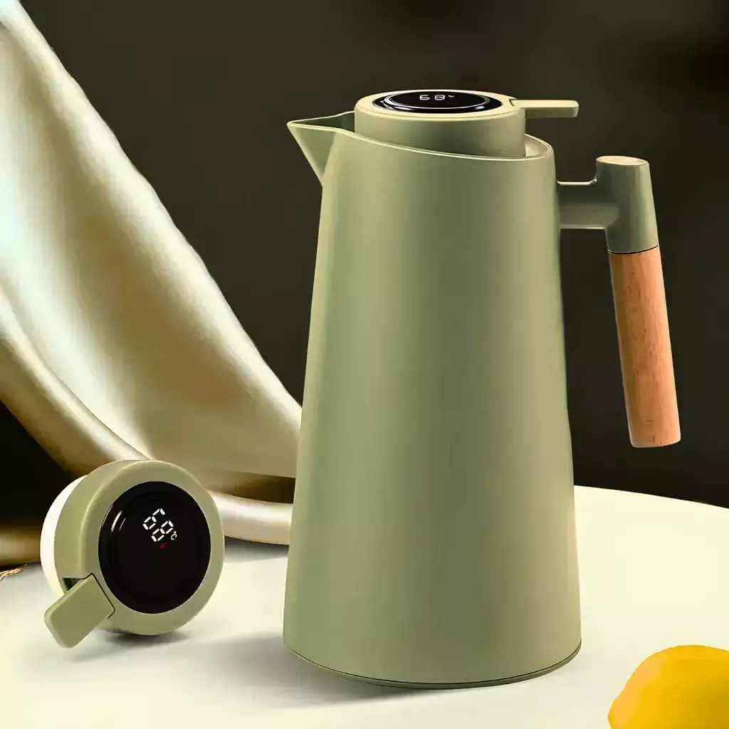 Garrafa Térmica Cabo Madeira com Display Digital - Conserve suas Bebidas na Temperatura Ideal!