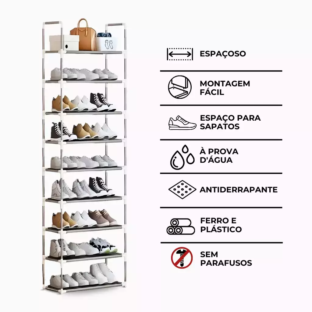 Acessibilidade: Facilita a visualização e o acesso rápido aos sapatos, evitando a bagunça.